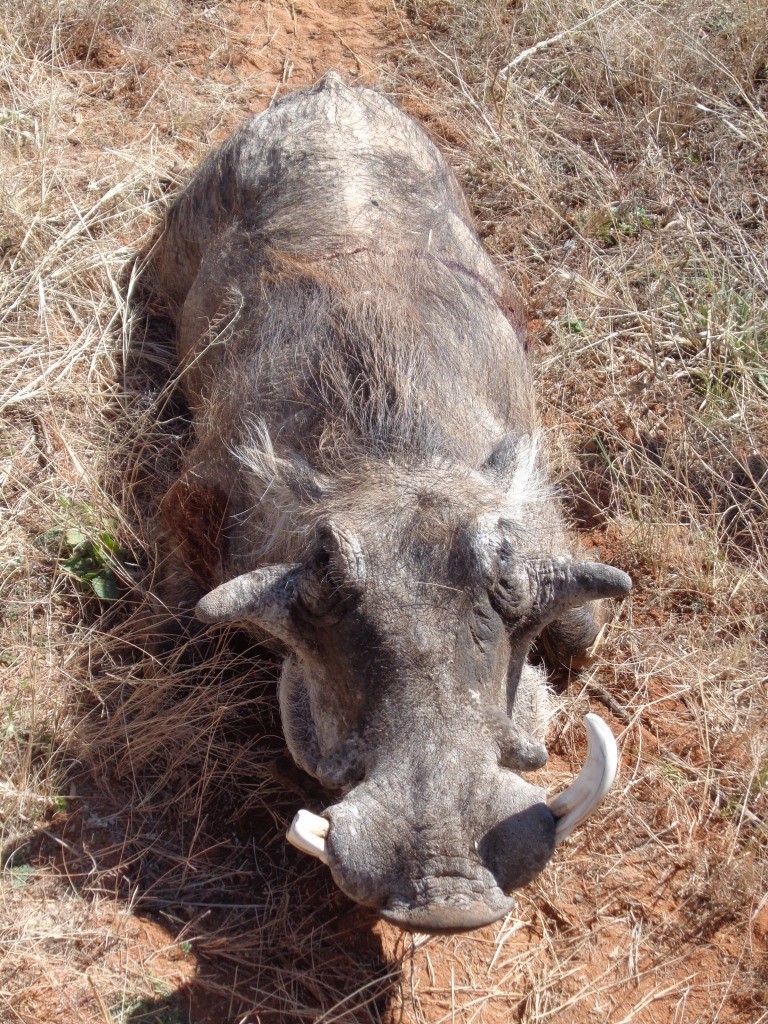 Warzenkeiler mit einem rechts abgebrochenen Haderer. Der PH hat den Schuss frei gegeben, da solche Stücke